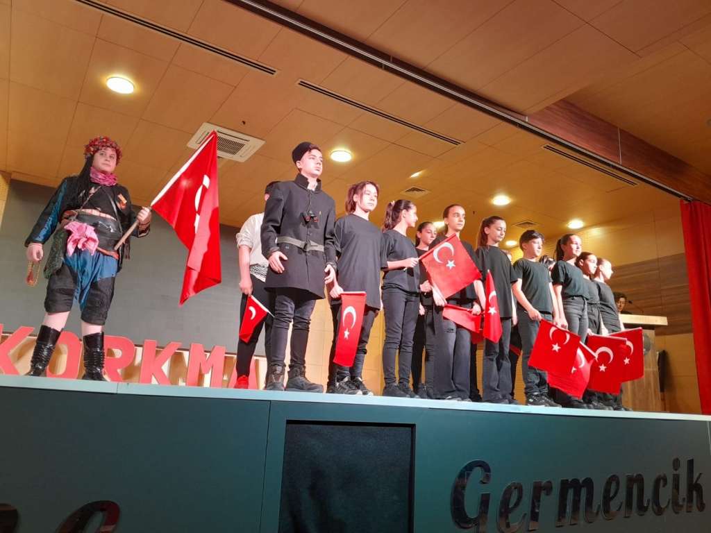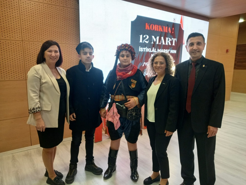 Okulumuz tarafından organize edilen, 12 Mart İstiklâl Marşının kabulünün 104. yıldönümü ve Mehmet Akif Ersoy’u anma günü programı Germencik Belediyesi Konferans Salonunda gerçekleşti. Programa Protokol Üyeleri, Okul ve Kurum İdarecilerimiz, Öğretmenlerimiz ve Öğrencilerimiz katıldı. Saygı duruşu ve İstiklâl Marşının okunmasıyla başlayan program, günün anlam ve önemine binaen konuşma, şiir ve gölge oyunu ve oratoryo ile devam etti.